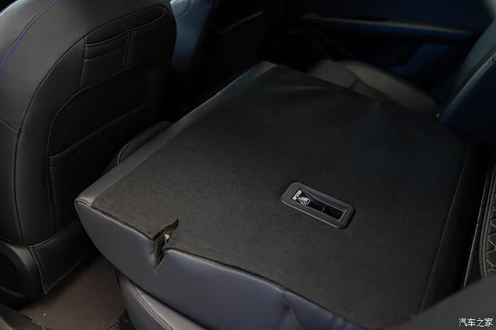 后排的中央地板有个细微的隆起,不过高度不是很高,并不影响后排中间坐个成年人,后排中央这里还有一个USB充电接口,下方还有一个储物格。