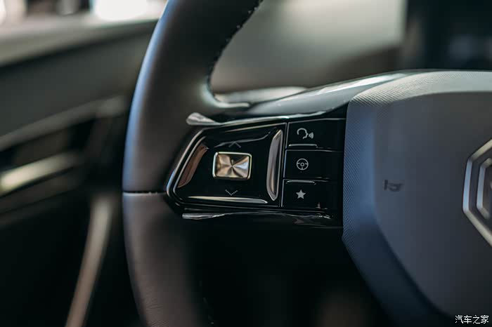 采用了两辐式方向盘的设计,方向盘两侧是有很多实体的多功能按键,操作起来比较顺手。