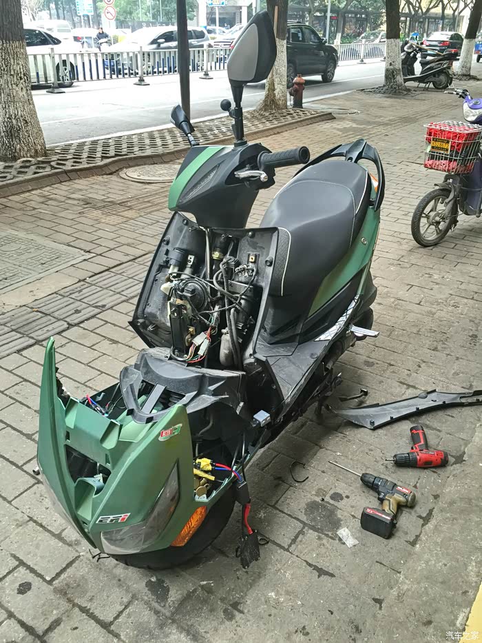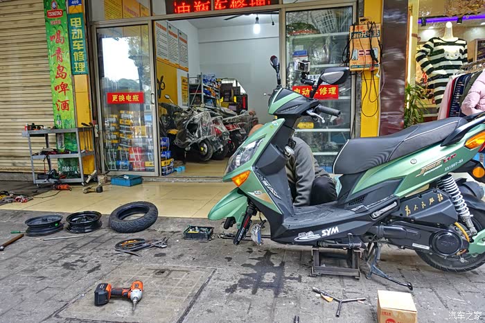 禁摩的缘故,现在附近都找不到摩托车修理店了,幸亏有些电动车店的师傅还是能修摩托车的!