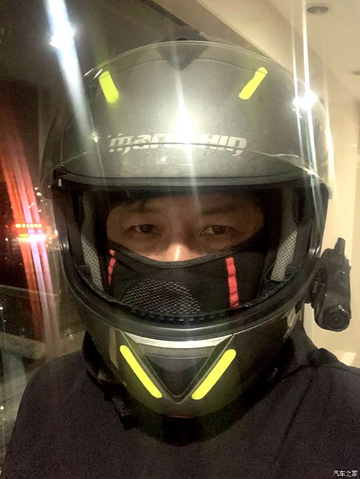 天冷的时候(5度以下),戴揭面盔还是要戴上厚的头套,不然还是有点冷的.....