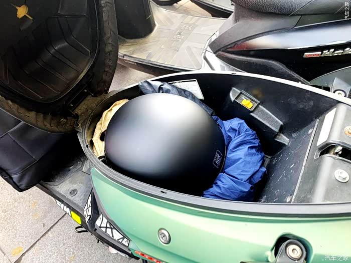 后来,因为出差时要把车停在高铁站,踏板的马桶有点小,放不下全盔,所以又买了一个半盔,出差时可以方便放进马桶里!(天气冷的时候,要戴头套,不然半盔风吹的有点冷!另外,我买的这个墨黑色的镜片太暗了,即使是白天都会影响视线,应该买透明些的好点!)