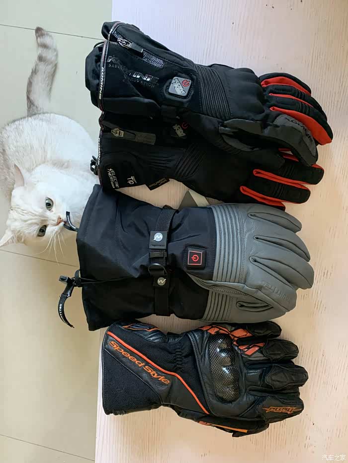 上面手套试了不管用之后,又买了上面中间的一款700+元的电加热滑雪手套来试,虽然没有带护具,但是手套本身很厚(比我之前的更厚),加上天寒地冻的,也不至于骑的多快,安全性估计没有太大问题吧!