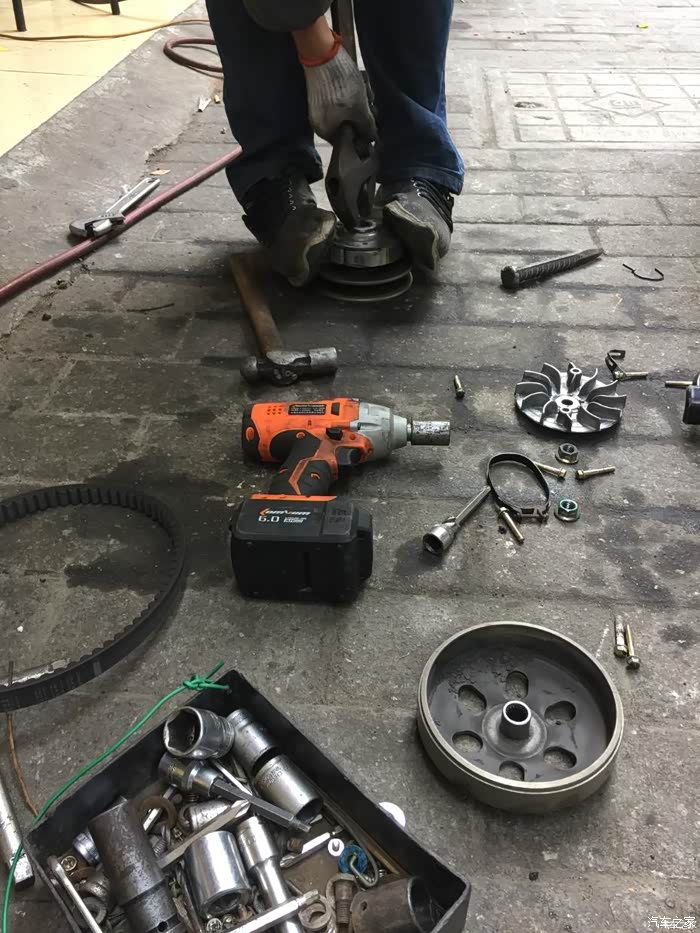前年,车子抛锚大爆发,皮带换了3~4条,火花塞,超级离合也换了,气缸螺丝掉了两颗.....一度怀疑是不是修车师傅做的手脚(不能确定,只是因为车子坏的实在太频繁,一会这一会那的....!)后来换掉皮带轮之后,恢复正常了!