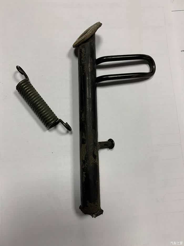前不久的一天,准备骑车上班时,莫名其妙的车子突然就倒了,吓了我一跳,仔细一瞅,竟然是“边撑”断了......倒车时把后视镜也摔坏了!