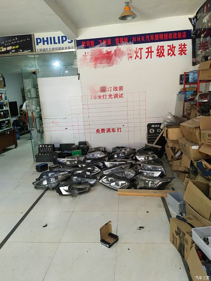 最后开始进入正题,改灯技术很重要,我在当地找了一家技术和口碑相对不错的改灯店改的,用的是奥迪a6拆车透镜海拉5,和飞利浦xv灯泡和安定。下面上图,图片有些乱,大家将就的看吧!