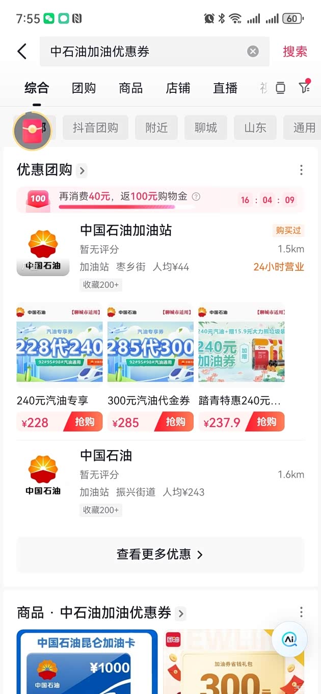 买了星越L一年两个月,因为加92号油就可以,所以每次加油都只加中石化、中石油,最近发现抖音上有各种优惠券,比如228抵240、285抵300等。