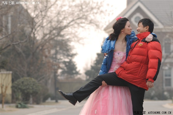 大冬天拍婚纱照好冷的,不过我们都很激动。这张照片看出来我们家是我老婆做主了吧,她是爷们,我是小妞,我很没地位的!做男人可悲啊!