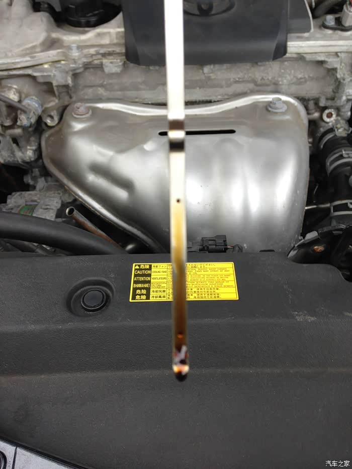 检查一下机油,合适。 这里提示一下,尽量少加点,因为不够的话可以回头再添,多了就麻烦了。