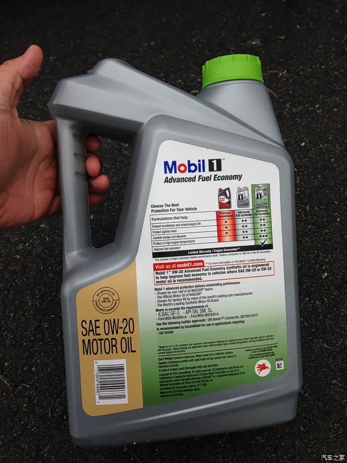 这一次的我使用的仍然是美孚全合成机油,具体型号是0W-20,Advanced Fuel Economy,也就是先进燃油经济型机油。有人可能会问为什么不用EP - Extended Performance ,也就是长效机油,我的理由是,因为我跑的相对较少,以一年换两次机油的换油间隔绝对是够用了,甚至对于这些全合成机油来说都有一点浪费,选用Advanced Fuel Economy可以在正常清洁和保护发动机的同时,提高燃油经济性,更省油。 机油论坛有朋友提到国内EP卖的比AFE便宜,美国正好反过来。。。那国内朋友们还是老老实实用EP吧。