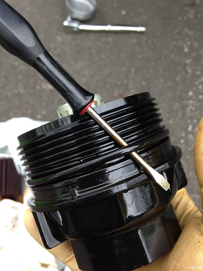 准备拧机滤。试了下这个杆太长了,下图又换个短的。