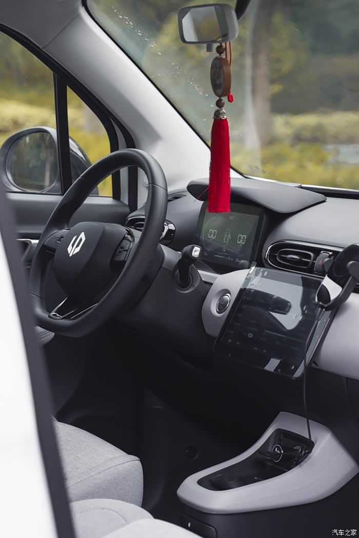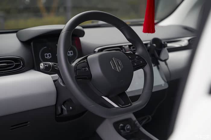内饰的风格,会有点像传统的燃油车。包括方向盘还有内饰的层级,A00级别的小车受制尺寸,在储物空间上总会挖空心思,那么采用怀挡既不是不可理解的事情了,事实上,怀挡还挺好用的。