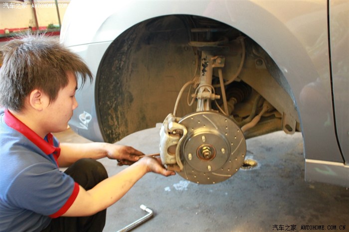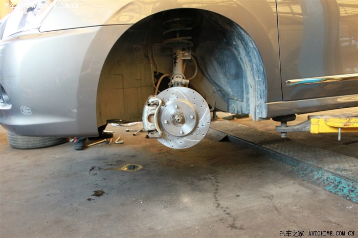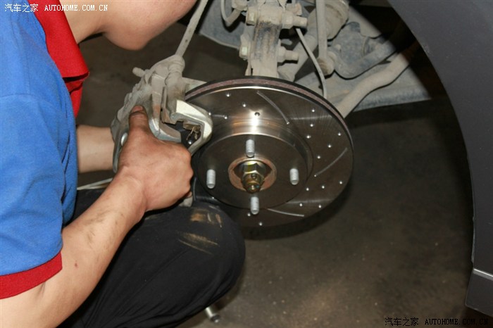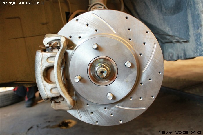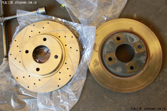 一直有人说,日系车刹车不行,从提车到现在个人感觉不错,有可能是因为没有开过别的车的原因吧,朋友都说我的刹车软,一直没当回事,后来经过一次高速急刹经历,彻底让我下定决心要改改这个刹车,本人比较喜欢研究,从开始研究就一直在各大论坛看帖,包括好多改装论坛,但是价格太过昂贵,动辄八九千块,对于一个月3000左右的我来说太奢侈了,经过多方面研究,我选择了打孔划线刹车盘,这种盘在国外已经普及,技术面上已经很成熟,所以还比较放心,在某购物网站上找了一个佐佐木刹车盘,前期还是不太相信,后听说一个修理厂的哥们自己也装了,我就说试试的心态安装前盘,也是出于对朋友的信任,安装后效果不错,希望能帮到你们,下面是安装作业!希望大家多给意见,申请版主给加个精,也鼓励我多多发帖哈哈!