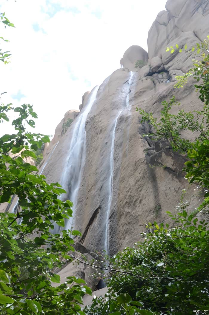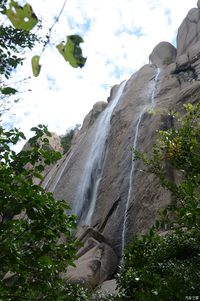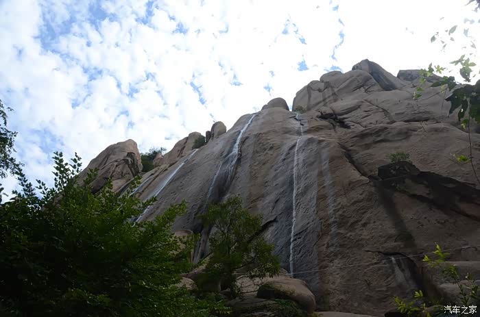 这个瀑布水量不大,但很高在一片巨大岩石上倾泻而下,也是一处奇观。