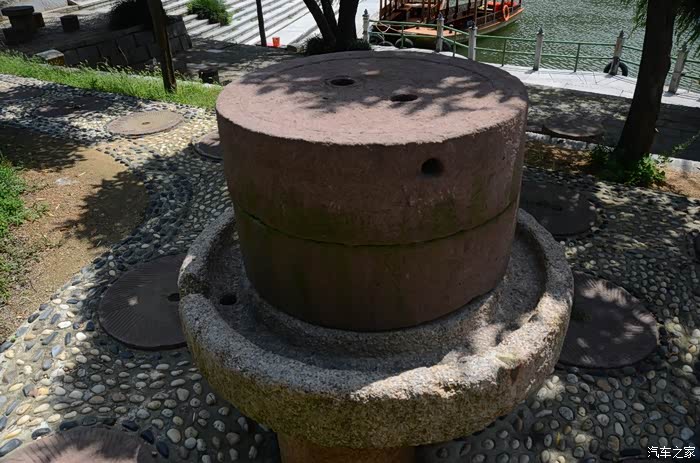 路边堆放的全是石磨盘。