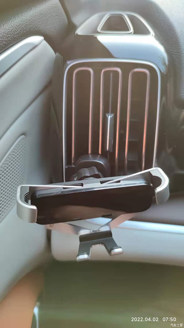 出风口手机支架,虽然有无线充电的位置主屏也可以导航,但手机看信息和手机导航也是必须的