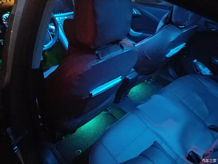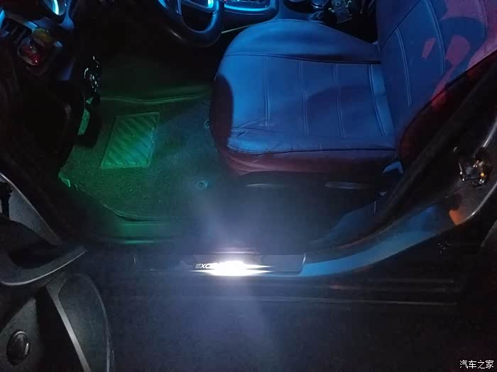 车内追加了LED可变色氛围灯 红色 门槛条流光白色晚上很好看