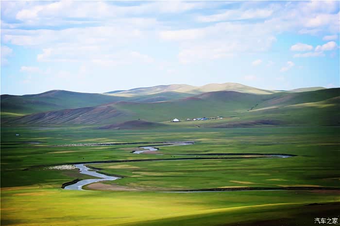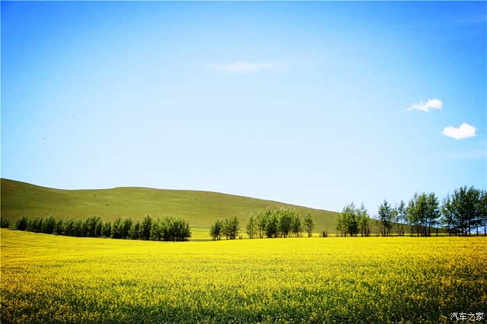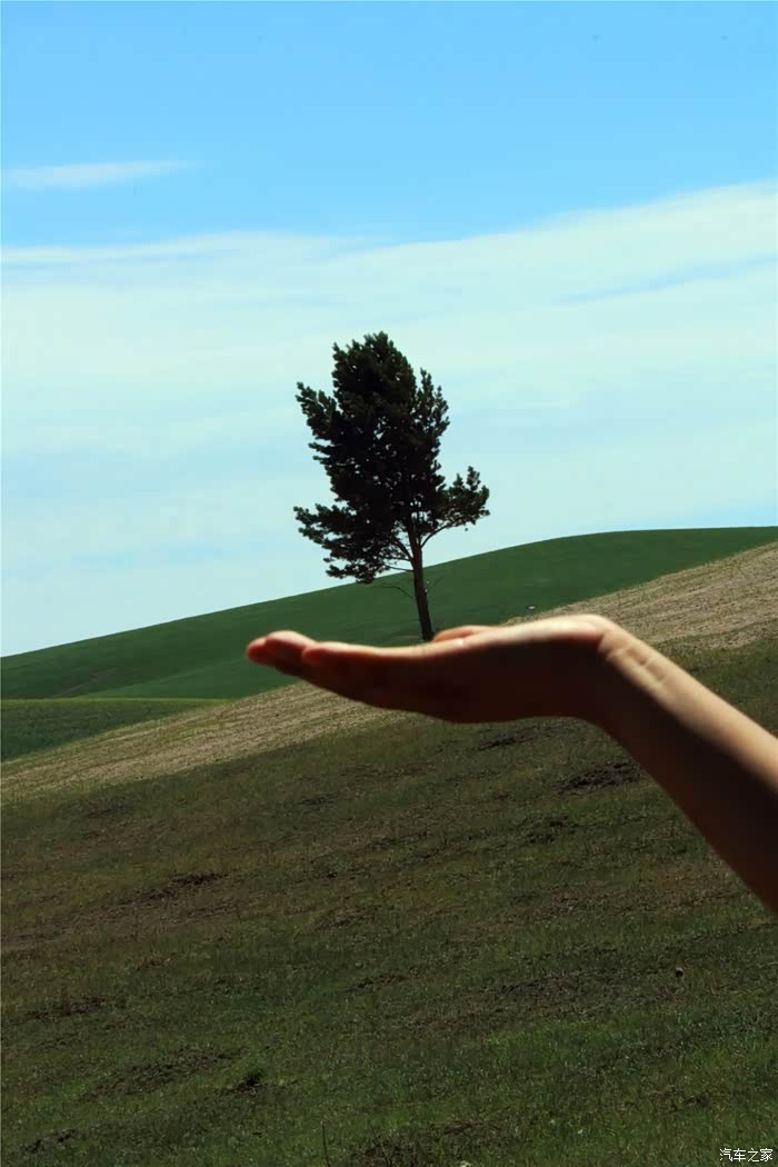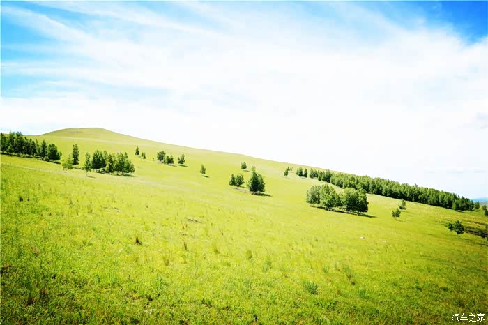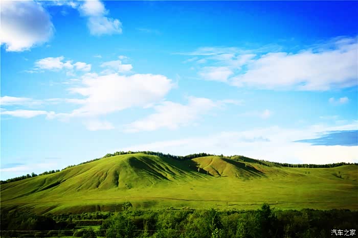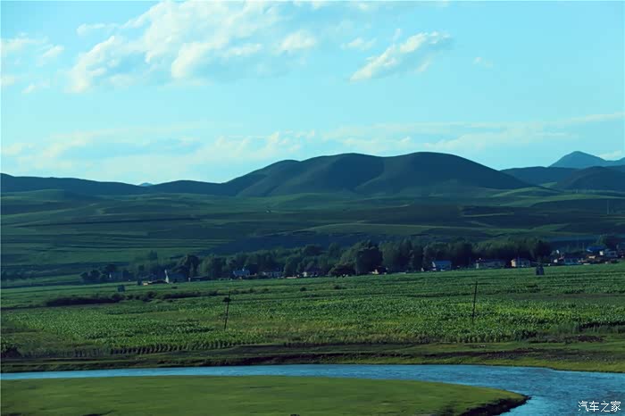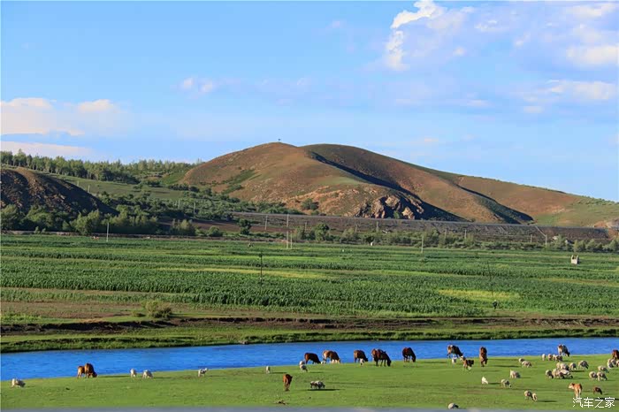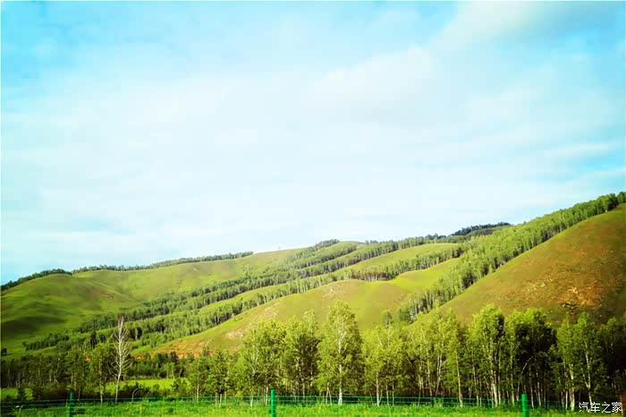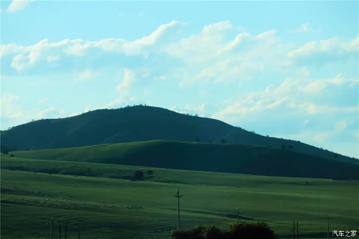 绿油油的丘陵,映衬着碧玉的蓝天,很美,刚进内蒙地界, 便对此行更加充满了期待。