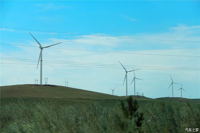 初见草原风车,草原丘陵已经遍地都是