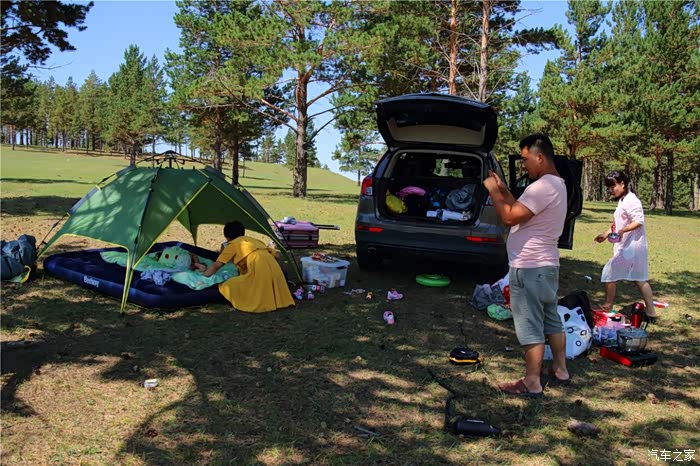 回想起昨天的美景,觉得行程太赶,我们的目的是游草原,对于本身就是山里走出来的我来说,我更想深入的去感受草原,所以暂时决定不去阿尔山国家森林公园了,而是把阿尔山到海拉尔的这一段半天的路用一天来走。阿尔山市,行程中最坑人的地方,以后有朋友过来,从这里过就行了,吃住会让你失望的。早上起来直接出发去海拉尔,这样行程轻松了些,路上慢慢走,看到不错的风景下车来玩玩,时间很快已近中午,这里风很凉爽,找块舒服的地方搭个帐篷,吃个午饭。
