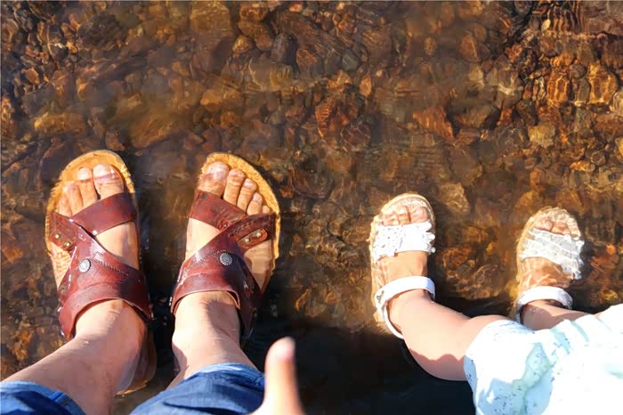 河水很清澈,水稍许有些凉。