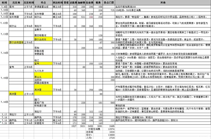 在决定去呼伦贝尔大草原后就着手开始准备行李,做出行路线安排,做旅行攻略等。(用了5天时间)