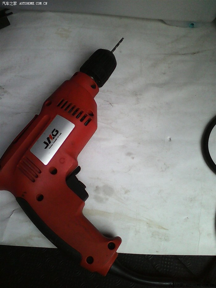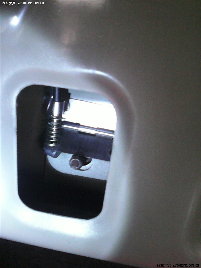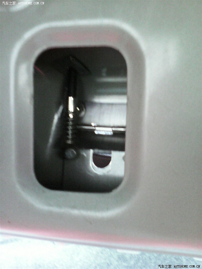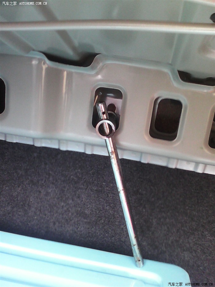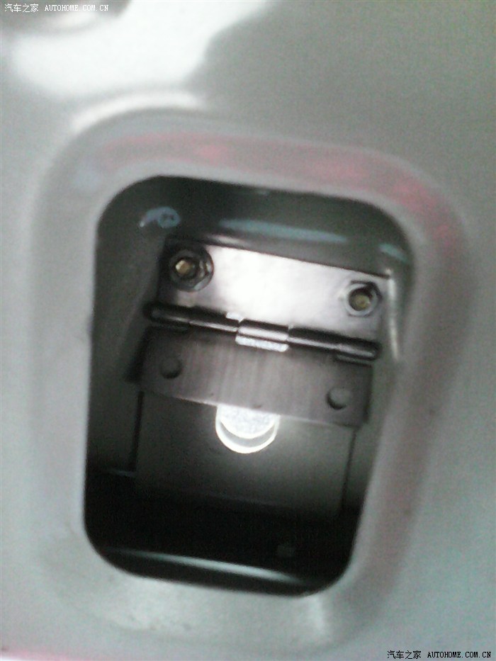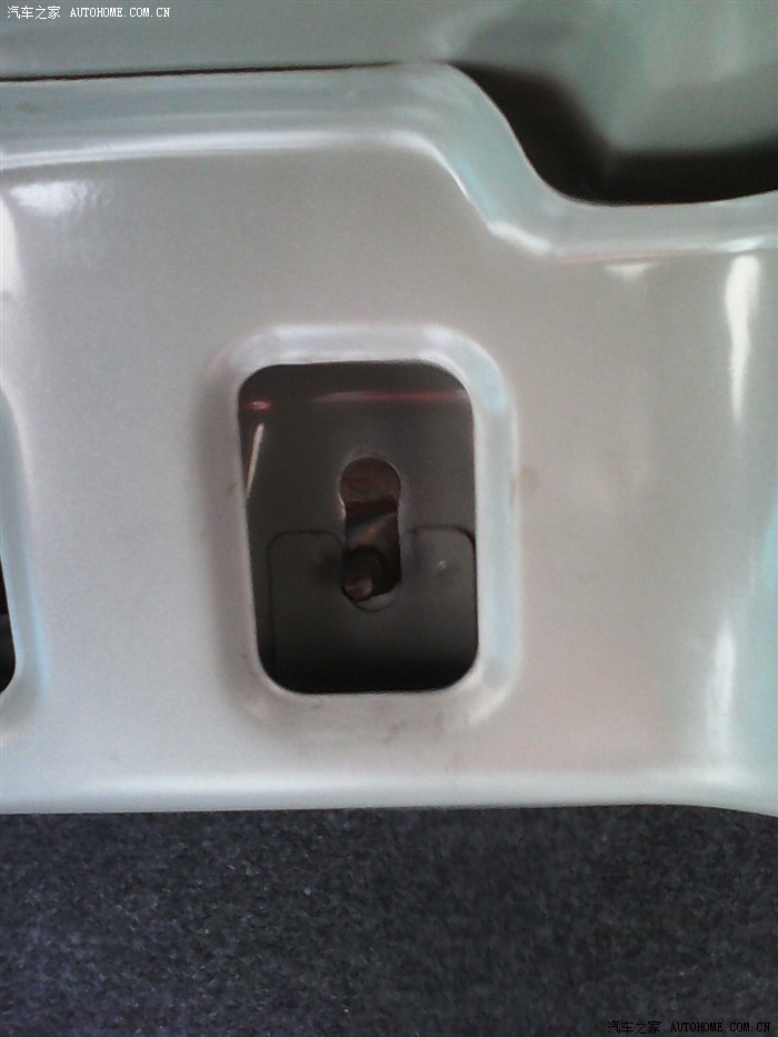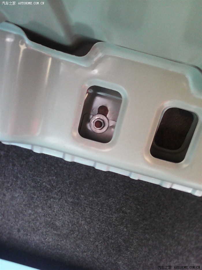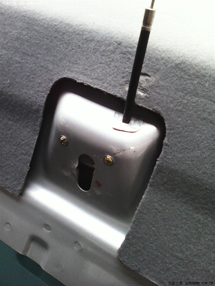 从驾驶室内看后备箱的螺丝眼处 :上方打1个孔,以便穿入闸线,固定牢靠