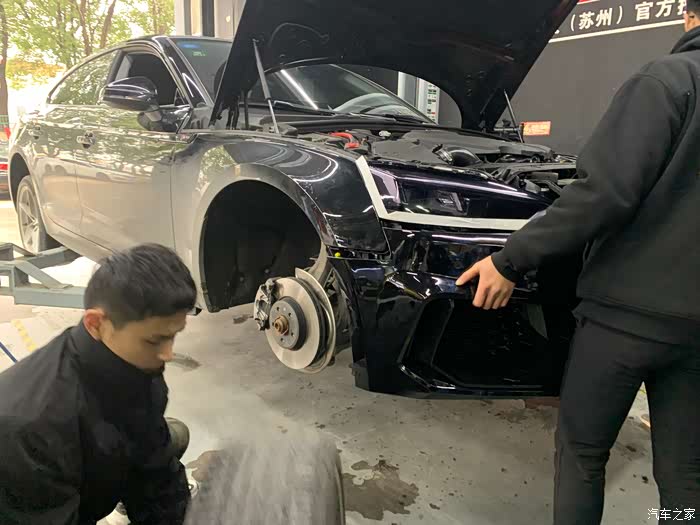 前面的包围选了RS5款的,因为S5的前脸和A5基本上没有多大的差别,后面则是改了S5款式的四出,因为了解了一下如果改RS5的后包围要把后保险杠也换掉,同样代价有点大