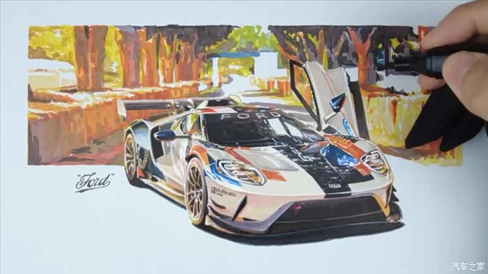 【不止画车】马克笔手绘树荫下的福特赛车 2020 GT MK II