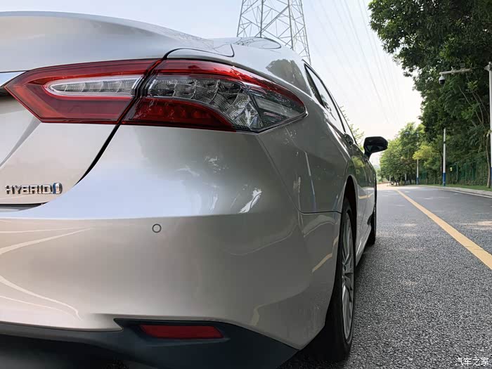 来个尾灯特写呈一个V字的造型,晚上点亮后简直媲美灯厂,我觉得凯美瑞的尾灯比隔壁家的亚洲龙大气。