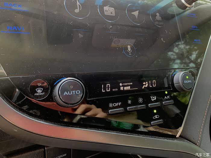 中控屏的设计就像一个Y字不规则设计其实挺有美感的,还有中控屏采用了黑色玻璃面板设计,两侧是虚拟按键,让整体风格提升了不少科技感。自动分区调节空调还带有nanoe空气净化功能,现在冬天干燥灰霾这么大关上车窗打开空调也能呼吸到新鲜的空气。
