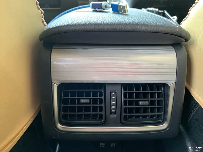后排两个出风口,下方还有两个充电接口。