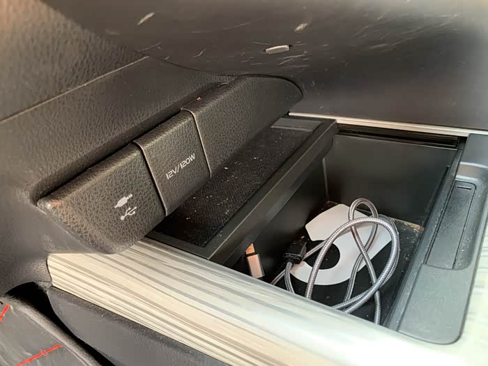 中控屏下方有一个拉伸小抽屉可以收纳一些充电线或者重要物品(私房钱)等等