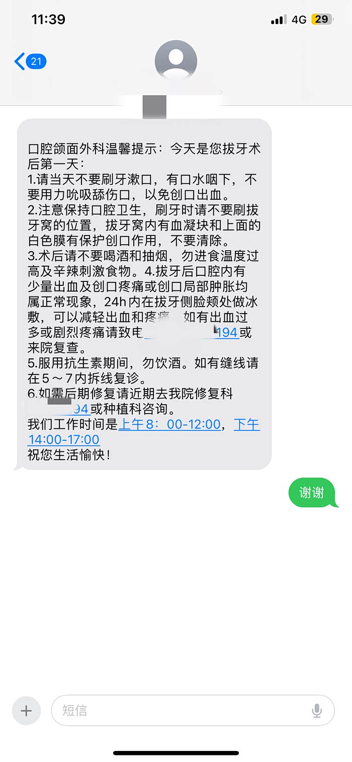 让我意外的是,拔牙第二天我收到了医院的温馨提示,还是蛮感动的😌~