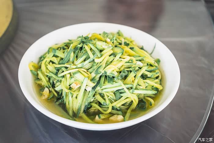 南瓜丝,这是用香油炒的,大锅的烹煮,味道和平时在家里吃的不一样。
