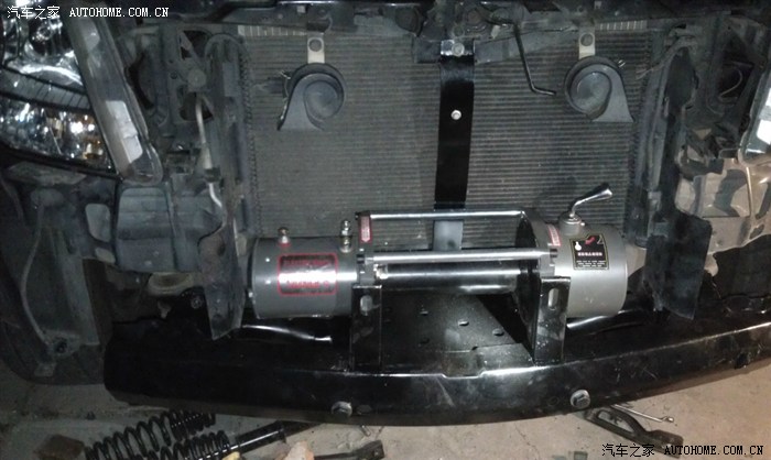 需要提醒大家注意的是:因为我选择的是国产的12000磅的,个头比较大,还好,空间刚好够装得下,原车的防撞钢梁要取下,两边的固定板加固一下,原车的只是2mm的薄钢板,不足以承受重大的拉力,还要在横向弯管上焊接两个槽钢底座儿,用来固定绞盘托板。把锁架支撑板换掉,原来的支撑板弯度过大,影响绞盘的安装。安装完以后,中网的下半部中间要去掉2格儿,用来安装导向轮盘。感兴趣的话,可以加我QQ 987426153
