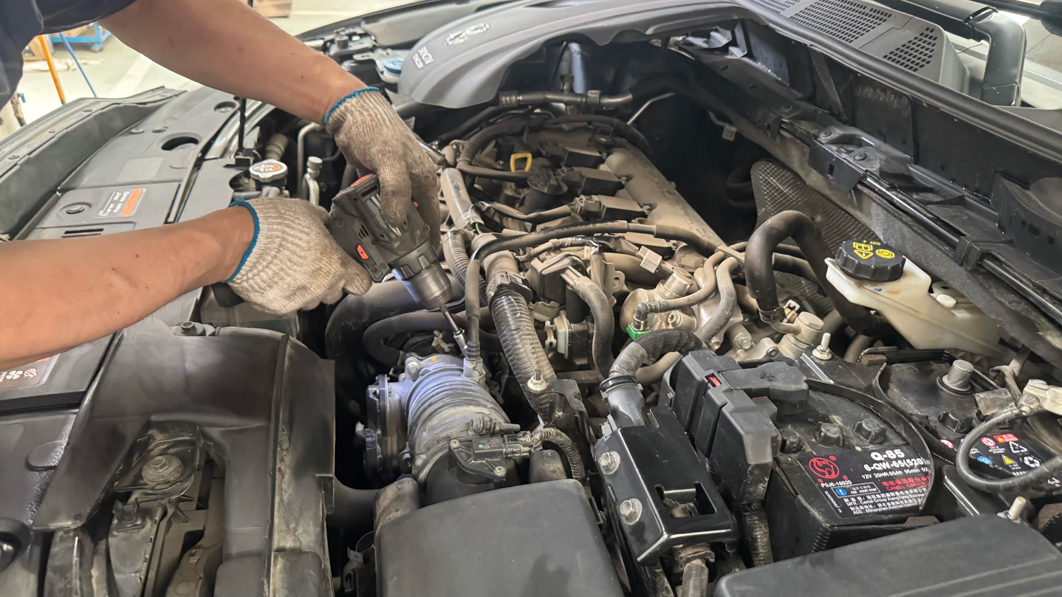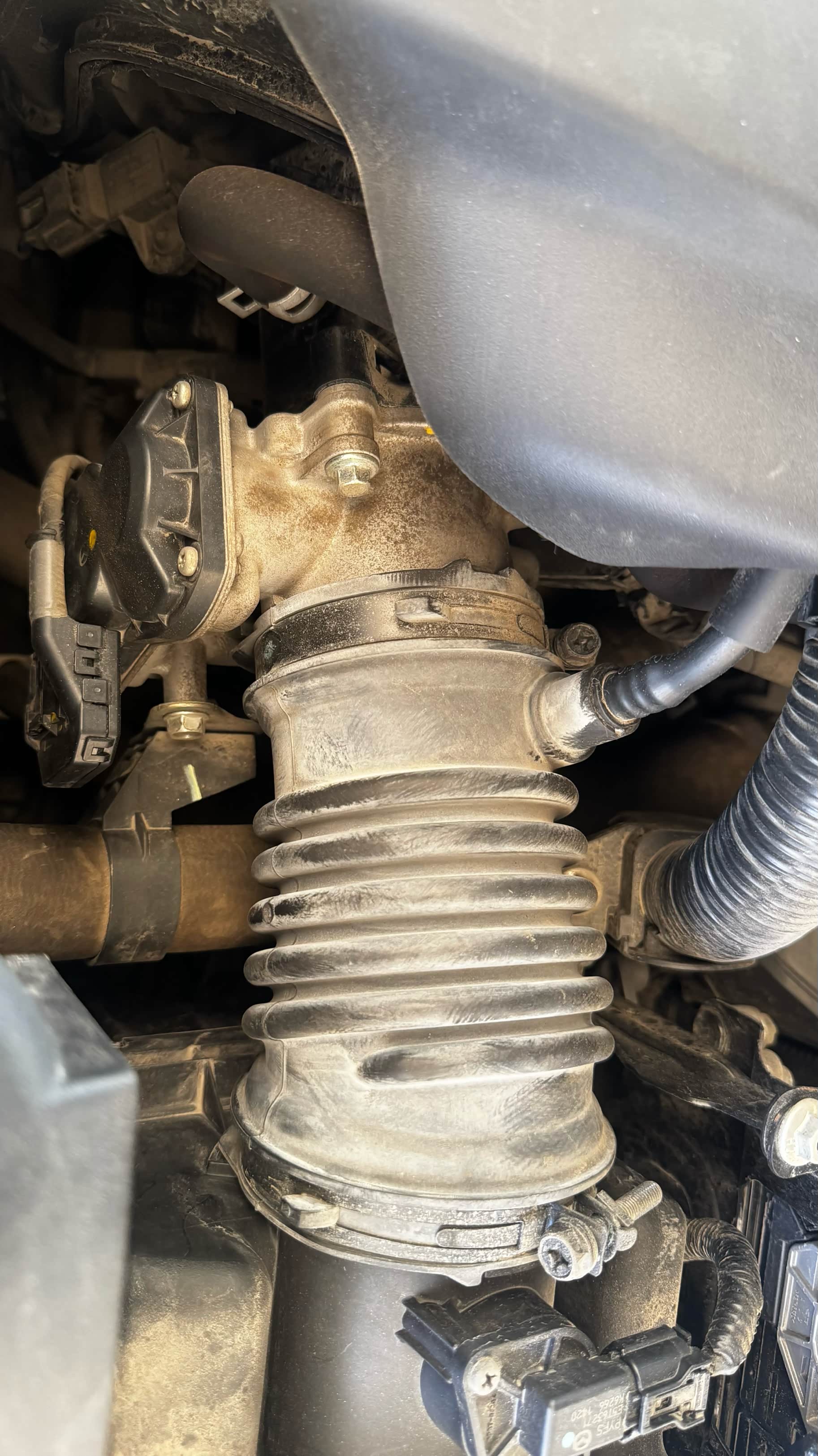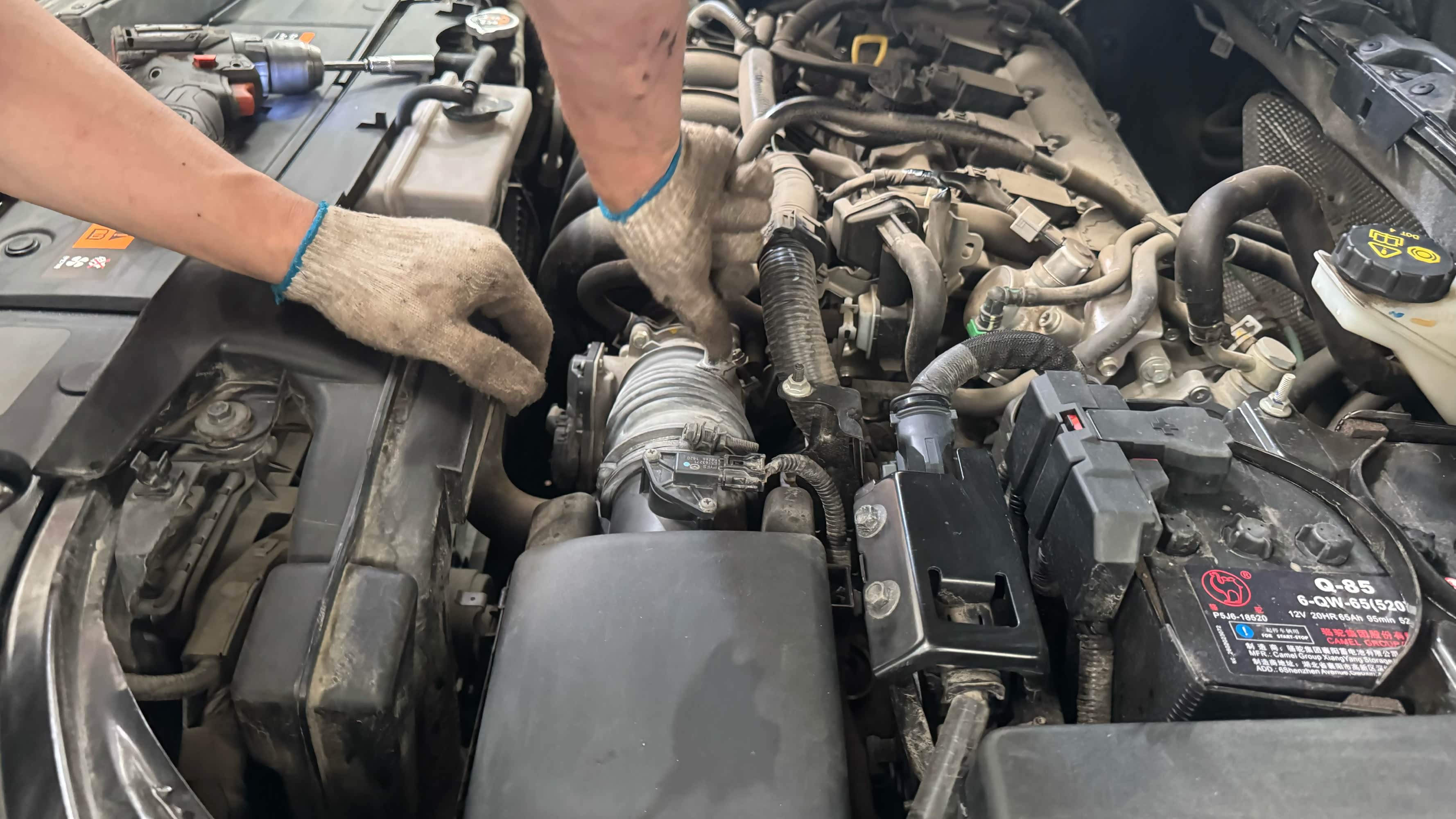 第一步:握住节气门上的黑色管,左右稍微转动,同时向上拔起,即可拆下黑管。(如果自己维护:拆卸所有管时,建议提前做好标记,防止装错位置。)