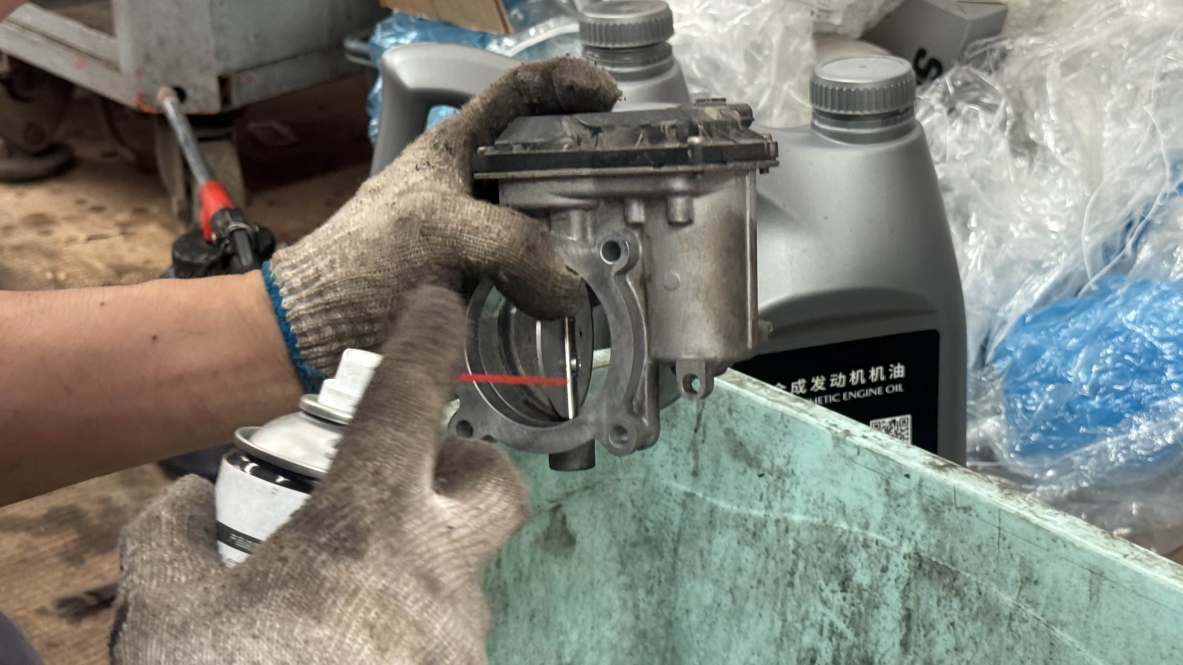 第五步:检查节气门上的黑色部分是否完全消除,如果还有,重复上述步骤,直至洁净。