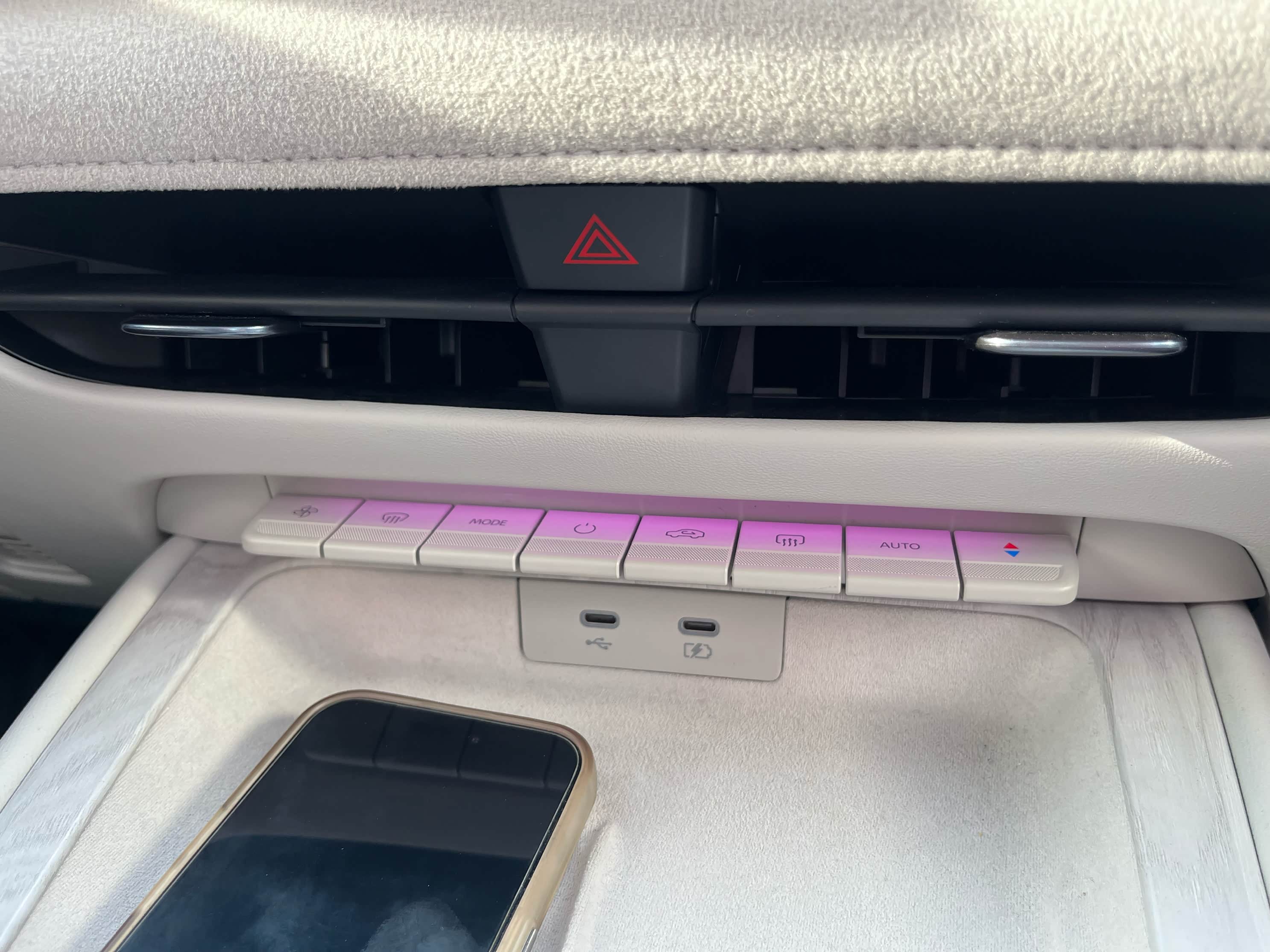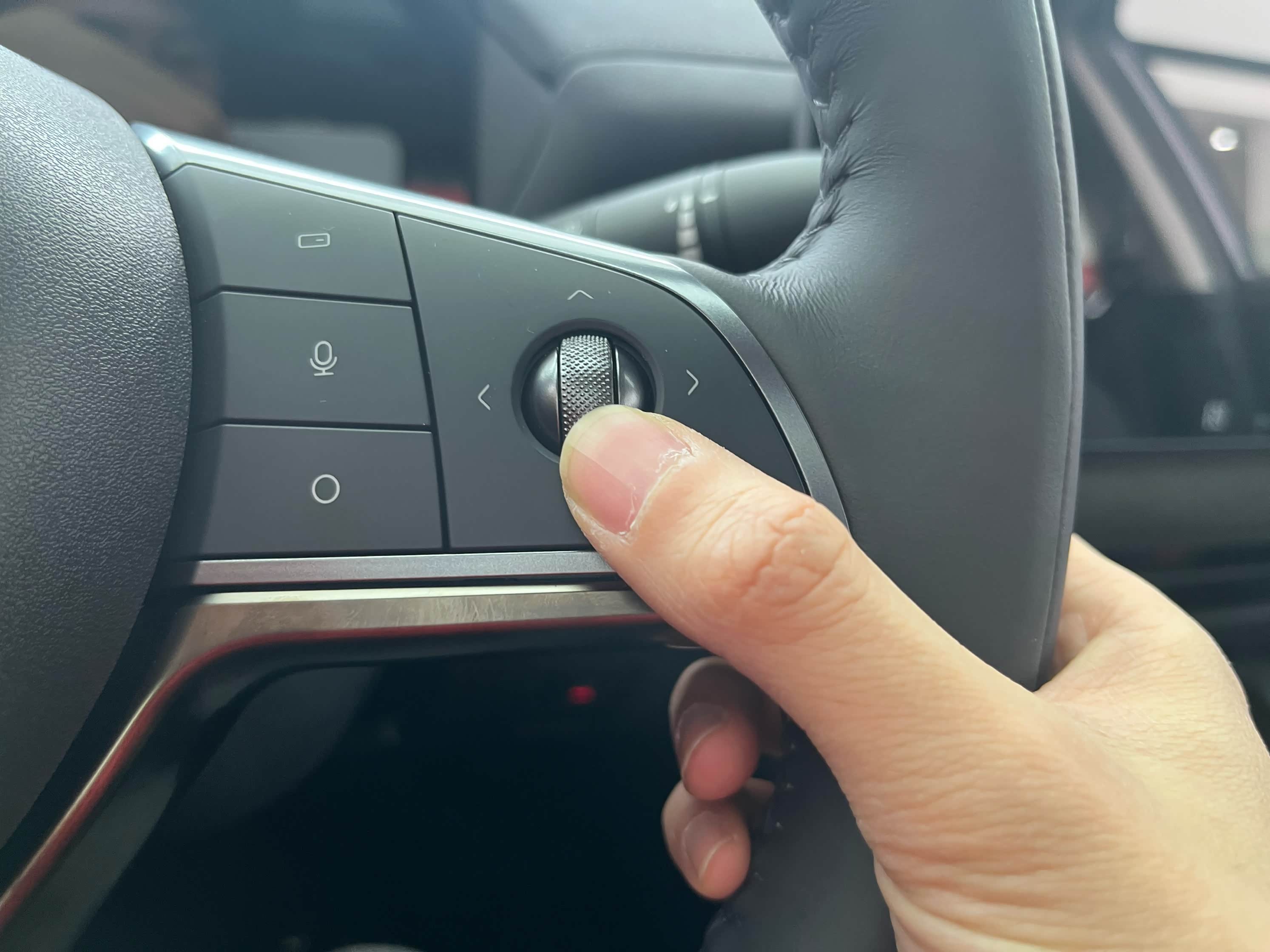 除了最低配都标配了座椅通风加热还有按摩功能,与我的亚洲龙差距一下子就拉开了。车内大量使用软包和翻毛皮,用料挺足的,再就是坐在新车内几乎没有什么异味也不熏眼睛,其实不管车企怎么宣传用了什么环保材料,自己的身体最诚实,这确实比老款的强化了很多,也比我自己的车好很多。方向盘上调节功能很多,球状按键滑起来也挺舒服。
