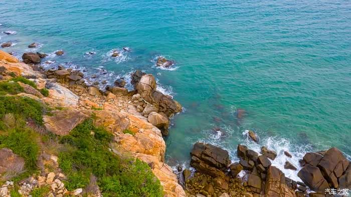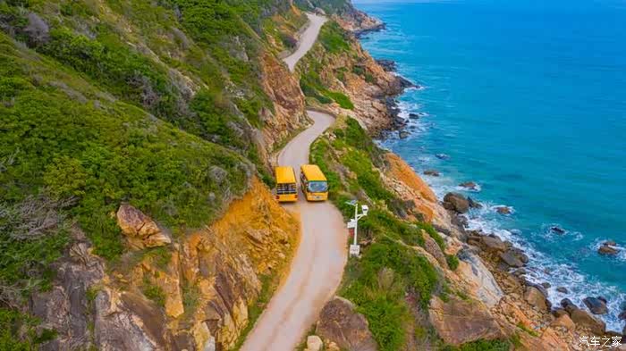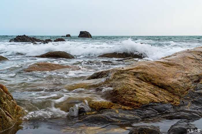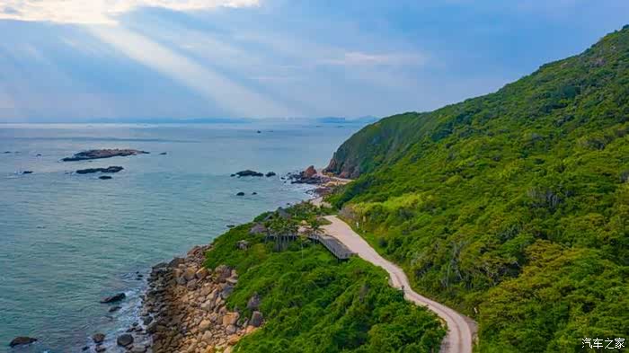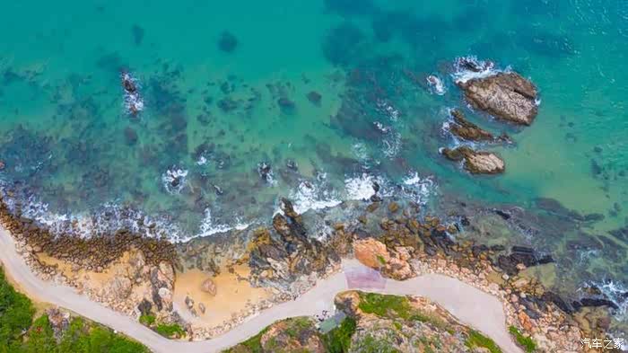 这条沿着漫长海岸线修建的公路,随着山势而走,随着海岸线而走,如同一条丝带连接着猴岛与呆呆岛。公路的一侧傍山,一侧依水,山并不巍峨,但海足够辽阔,时时可见海浪拍打在岩石上,发出哗哗的声响,溅起洁白的浪花……就这样周而复始着。