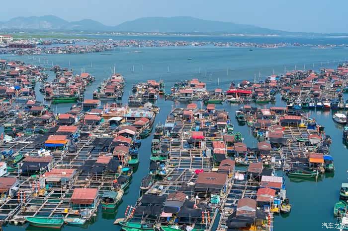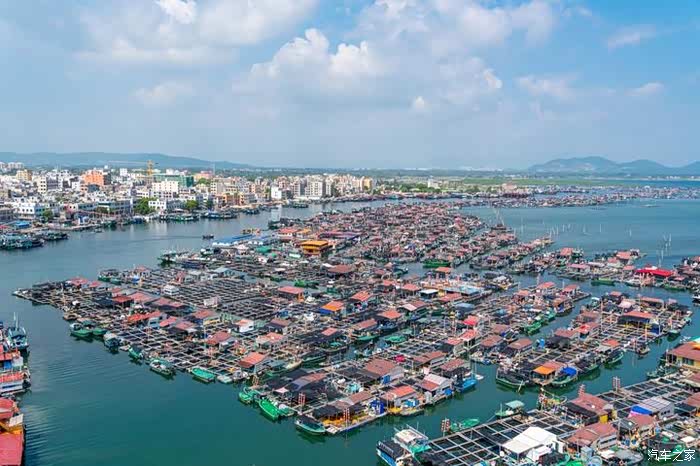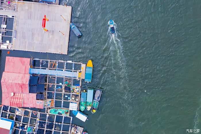 从观光索道上向下望去,海面上密密层层地漂浮着一幢幢小木屋,顺着港湾鳞次栉比延绵数里,一眼望不到头。仔细看,不光是小木屋,还有一个个用木板围成的方方正正、大小相仿、规则排列的格子,这些格子是水产养殖网箱,渔民起居饮食都在这些小木屋里。这就是当地人俗称的“渔排”。