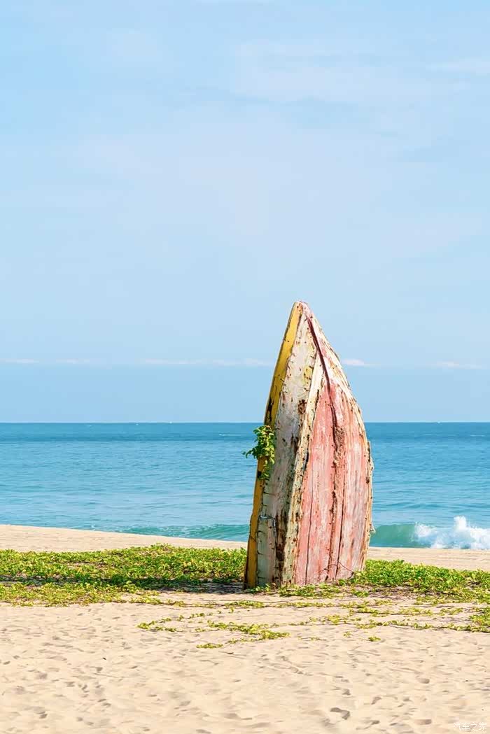 呆呆岛沿海沙滩上有随意摆放着的古旧的船,这些船古旧、斑驳,每一艘都有着唯美的故事,这些摆在沙滩上的古船也成了呆呆岛的一景。碧蓝的大海、柔软的沙滩、蓝蓝的天、洁白的云、高大的椰子树为背景,与这些船合一个影,也透着满满的ins风。