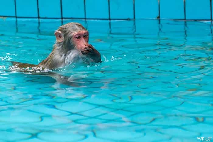 浴圣池沙滩椅、遮阳伞一应俱全,这里是猴子们练习游泳的地方。除了潜水外,猕猴的游泳姿势看上去“狗刨”没多大区别,脑袋露出水面,四肢划水。对于成年个体而言,游泳多半是为了获取水中的食物,潜水是为了获取水底的食物。青少年个体则把游泳当成一种娱乐项目,它们会从岸上或高高的树上跳进水里,溅起水花,在水中嬉戏。