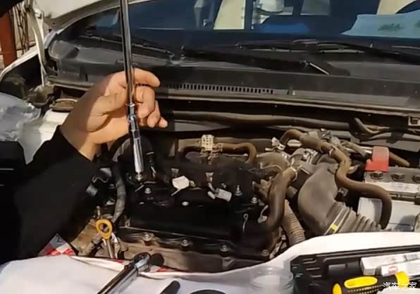 用10mm套筒拆卸线圈的固定螺丝
