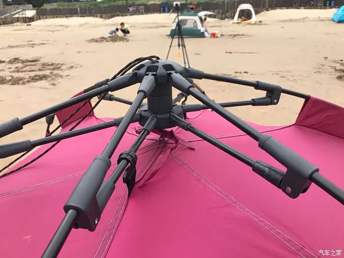 缺点:拉绳是设计,对新手搭建郑鹏这可能不太友好,地钉较细,插在沙滩上可以接受,若是在草坪可能有折弯的风险。