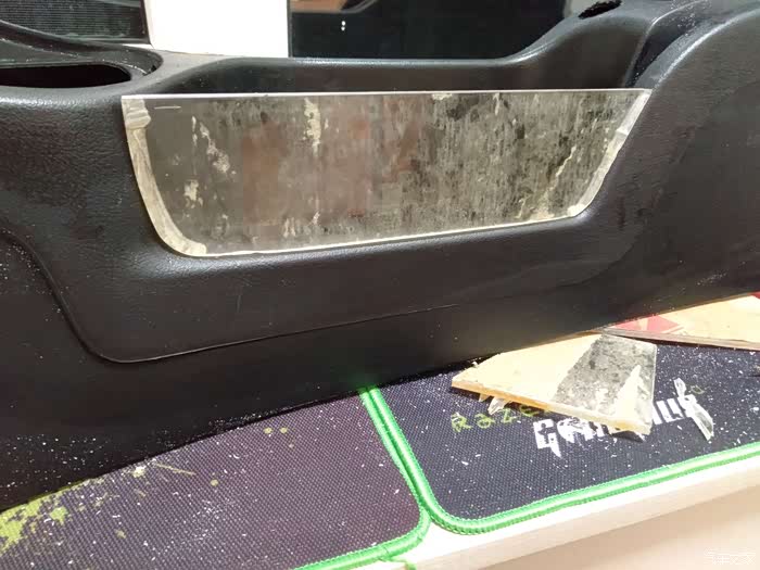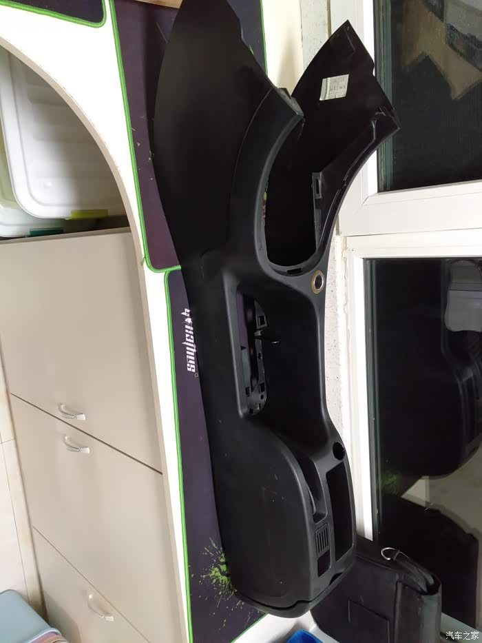 中央通道拆下来一共三个螺丝在图上做了标注 前面的螺丝需要把空调上面的银色面框拆掉自己拆卸无法拍照,通道拿回家后先用湿毛巾擦拭干净等待做手刹面板。