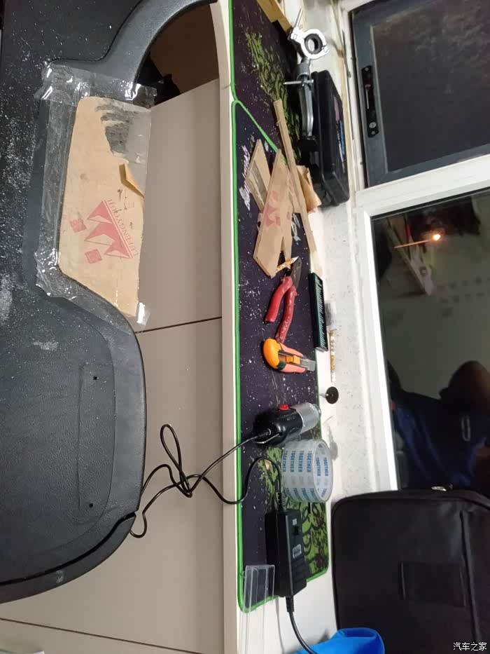 买了一米多的皮革本来打算整个全部包起来,由于中央通道的形状太特殊,皮革的无法拉伸只能先把这部分包起来后期慢慢的剪裁拼接吧,之前考虑的无线充电设备看了一下个头太大无法安装,只能在安装两个点烟器的插座了[