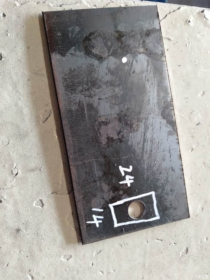 找了一块铁板割出24×14的方孔,用来安装手刹灯开关