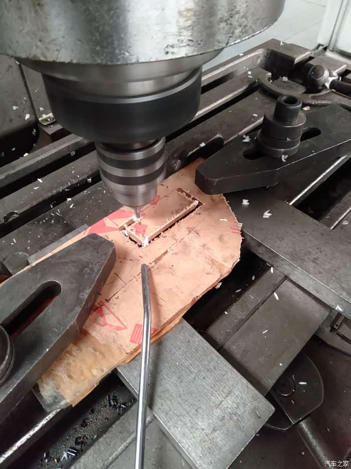 顺便把电子手刹开关的孔也一起划出来直接加工省时省力
