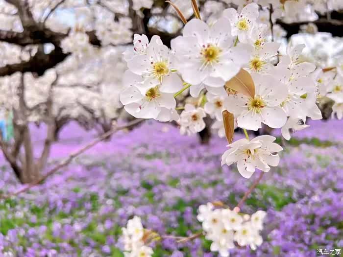 景区这里用紫色的兰花与白色的梨花相作映衬,三步一景,美如天境哪里需远去无锡鼋头渚去看晚樱。白色高洁、紫色深沉,这一片一望无际的白紫交替的花海值得沉沦于此!