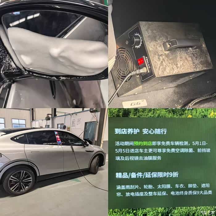 常规检测后,就进行了空调杀菌加油膜祛除作业本来昨天已经洗过车,告知不用售后洗外观了,结果没想到油膜作业后得洗车。以前能秒洗的外观,现在排个洗车的时长都以小时计,怕小鹏卖不好,又怕小鹏卖太好,唉,一来一回在店里熬到了四点多。